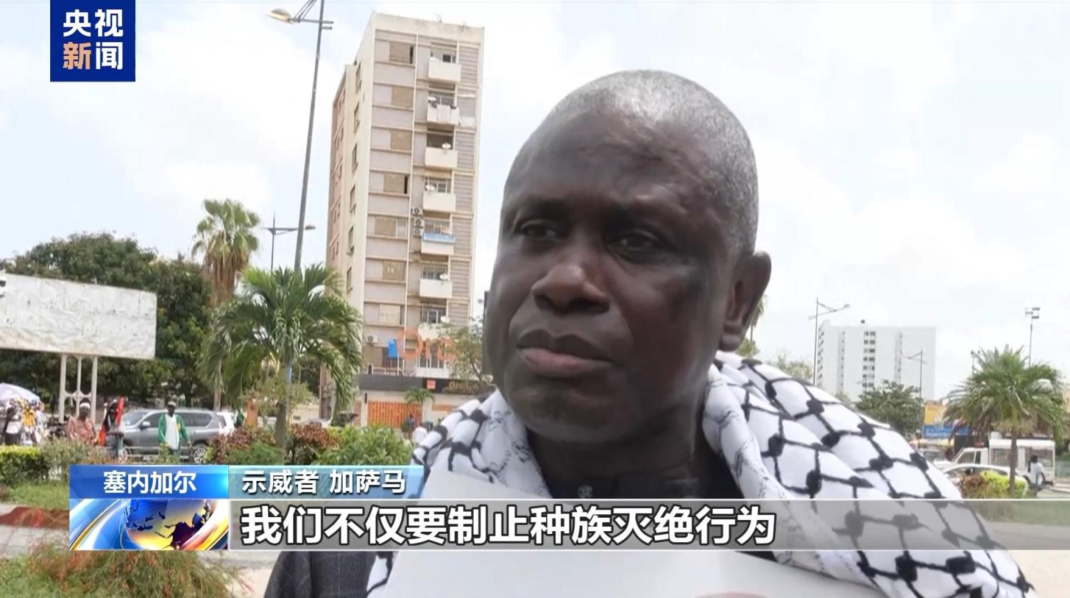 同一天,在塞内加尔达喀尔,大量示威者高举巴勒斯坦国旗走上街头,呼吁结束在加沙地带的冲突,要求以色列结束在加沙地带的“种族灭绝”行为,落实“两国方案”。